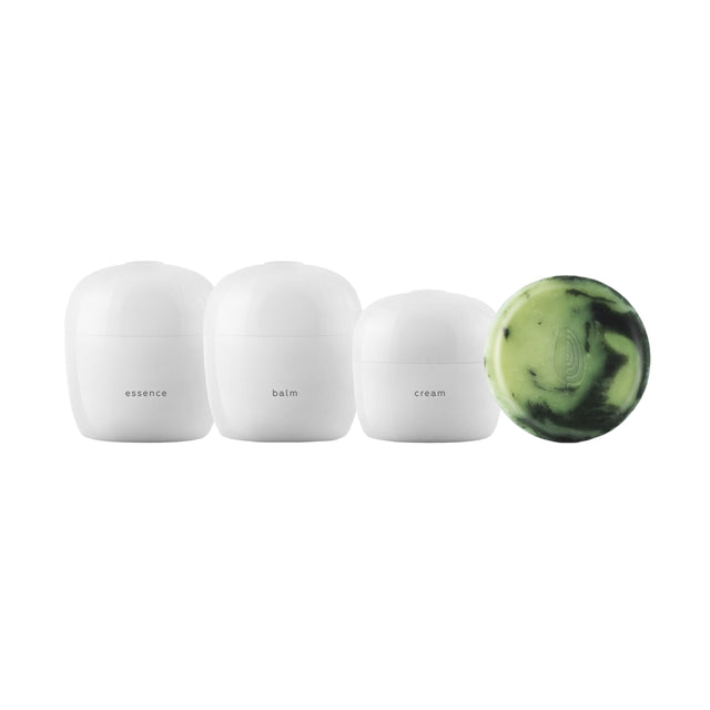 This four-step routine pairs Ayuna’s most advanced formulas to reset and revitalise the skin. The Artisan Soap detoxifies with Activated Charcoal while nourishing with Olive Oils. The Balm, infused with volcanic glass and active carbon, purifies and smooths. The Essence gently exfoliates and brightens with enzymatic actives and antioxidants. The Cream I seals in hydration with Stem Cells and Peptides, reinforcing the skin barrier. Together, they clarify, fortify, and bring skin back to balance.