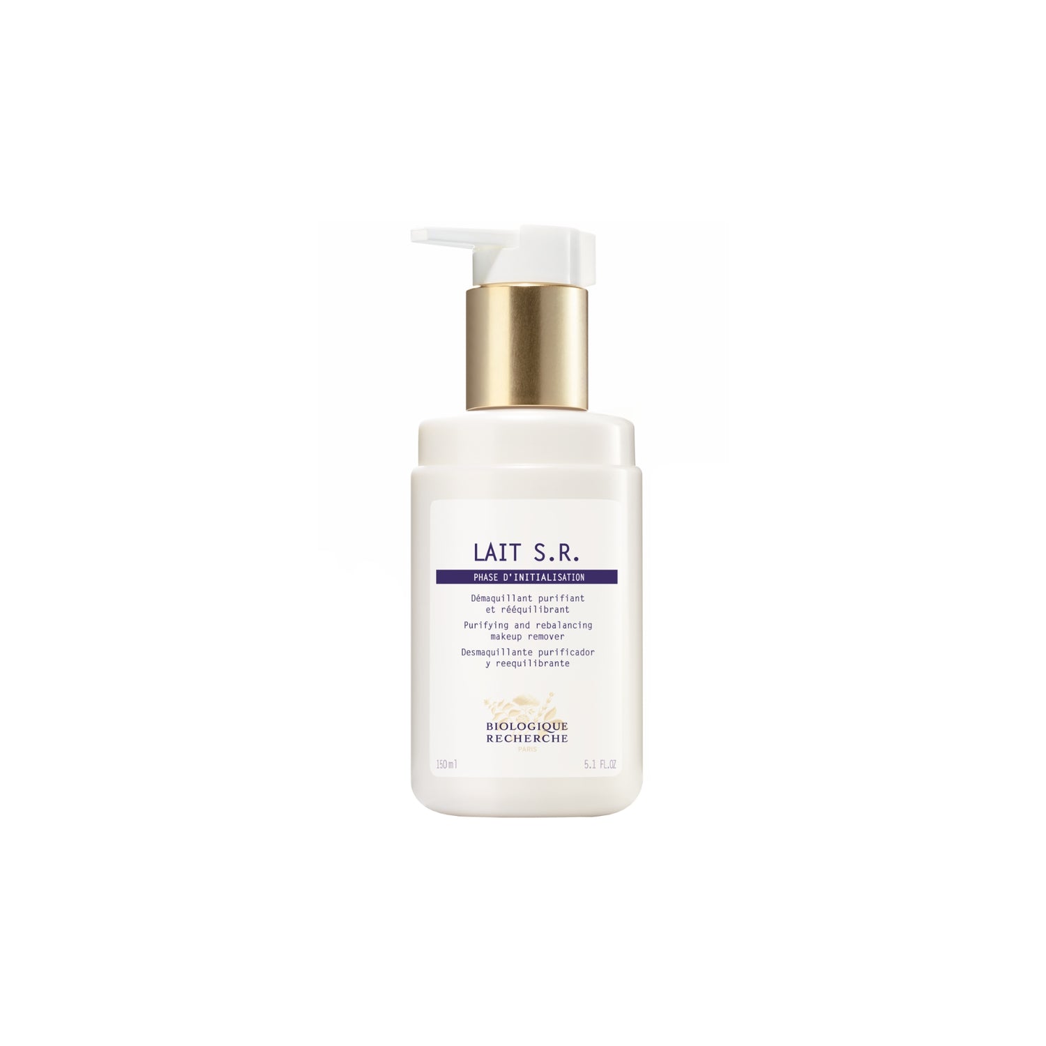 Apply Biologique Recherche Lait S.R cleanser with fingers or with the BR Face Glove to face, neck, and décolleté, using light circular movements. Remove with slightly moist pads or rinse off with cold water. Repeat steps to complete a second cleansing.