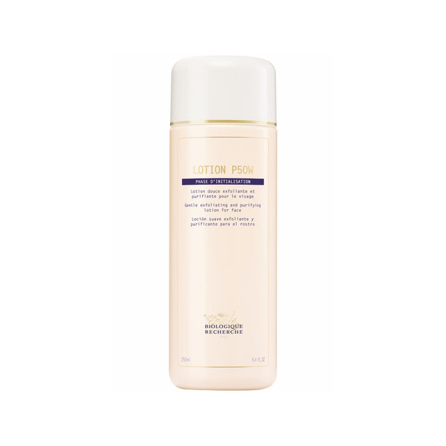 Biologique Recherche Lotion P50W is the mildest exfoliating toner in the P50 lineup, with anti-acne and anti-inflammatory properties. Its blend of Acids reduce oiliness and acne, while Arnica Extract soothes the skin. Experience smoother, softer, clearer skin and a more even complexion.