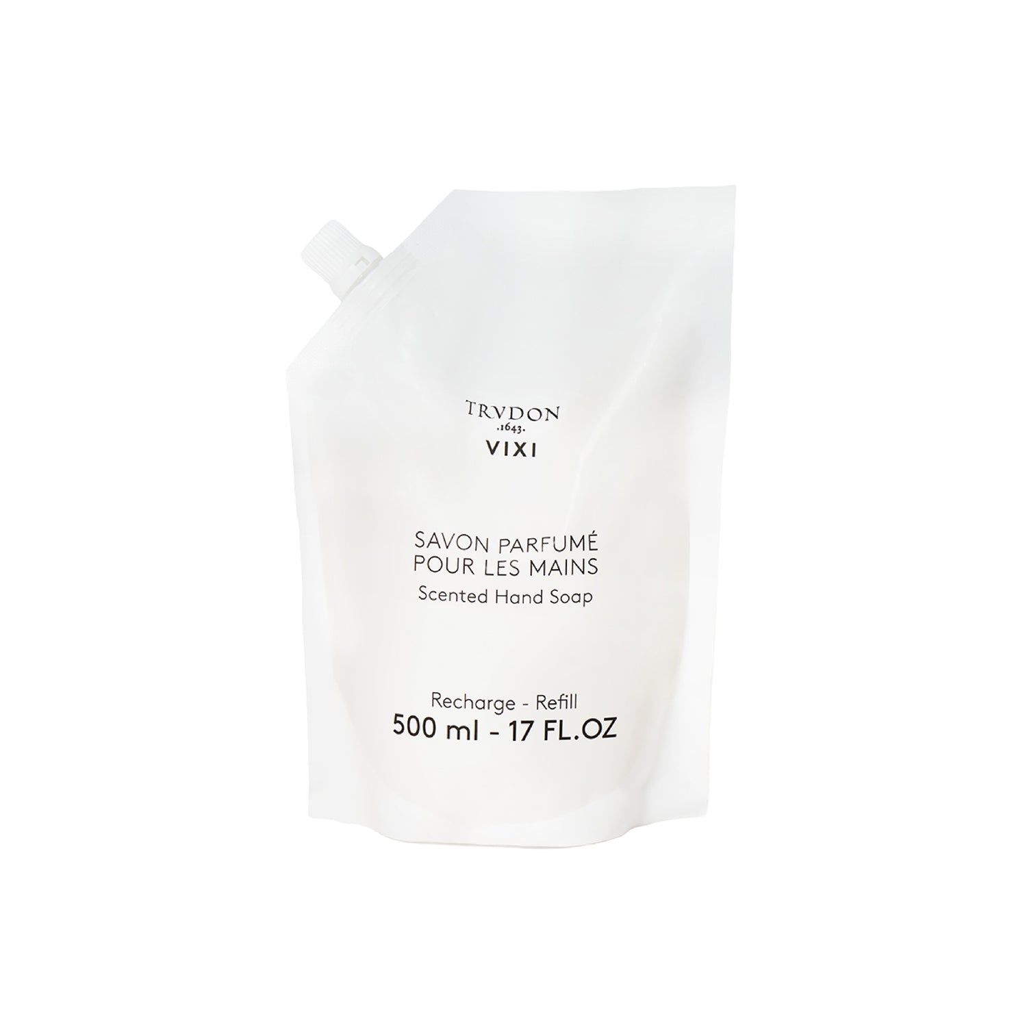 VIXI Hand Soap Refill (500ml) by Trudon offers a sensorial hand-cleansing experience, infused with the botanical notes of Petitgrain, Sage, and Sandalwood. This aromatic blend purifies and perfumes the skin with a subtle, woody warmth. An elegant continuation of Trudon's signature fragrance in a sustainable format.