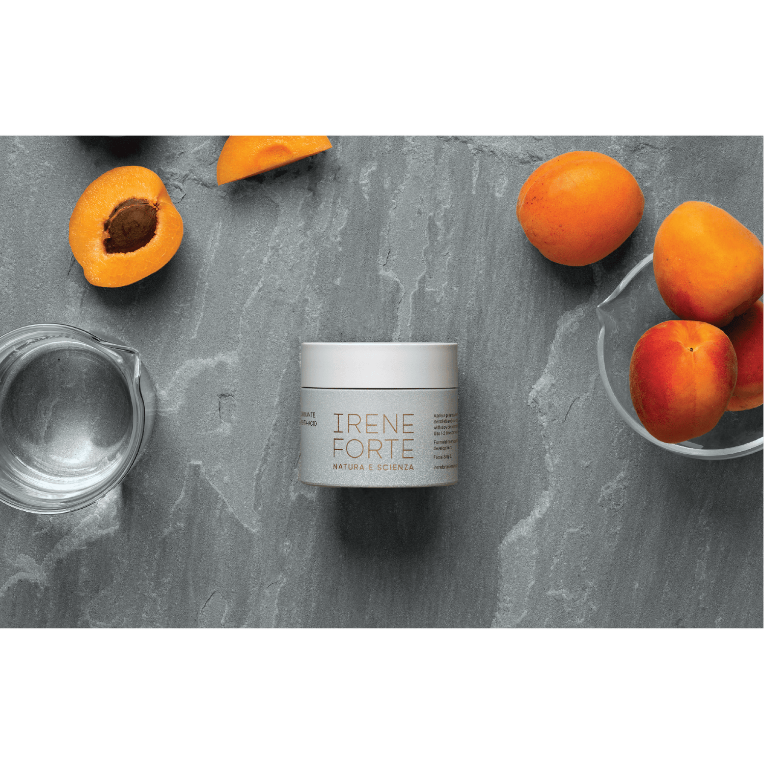The Irene Forte Apricot Penta-acid Polish is a dual action exfoliating scrub-mask. Formulated with Apricot Seed Powder and five gentle-acting exfoliating acids to clarify, brighten and refine the skin.