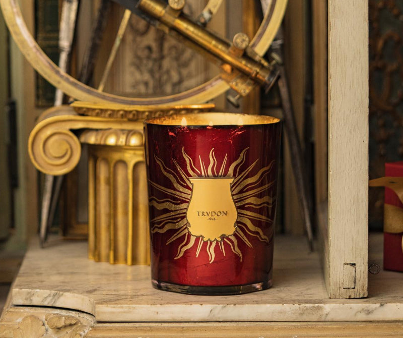 The Trudon Gloria Candle blends earthy richness with bright citrus undertones for a warm, festive and smoky atmosphere.